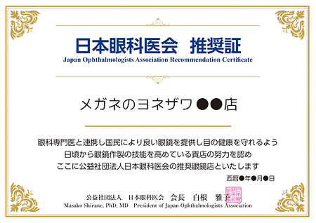単に眼鏡を販売するだけでなく、眼科専門医と緊密に連携し、医学的エビデンスに基づいた「質の高い視生活」を提供できる眼鏡店だけがこの推奨を受けることができます。